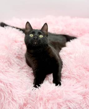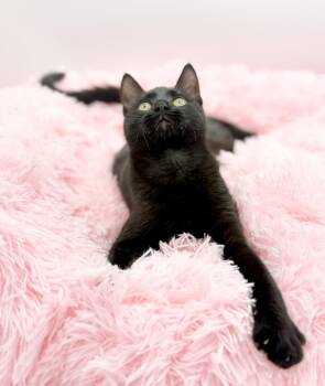 This kitten is 4 months old. She loves playing. She does great with all other cats, dogs, and people.