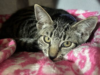 Estimated Birthday 08-10-2025 Okay to live in a home with... Cats Physical Description Clark is a tabby male kitten with...