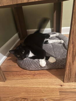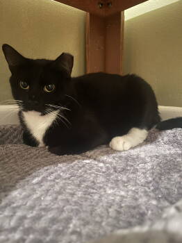 I am a beautiful tuxedo who was found as a stray outside. I ended up being a really nice kitty...