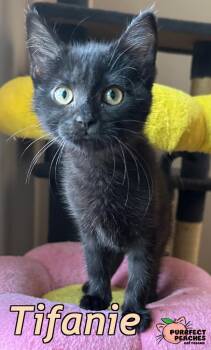 Tifanie is a stunning female kitten with short, luxurious black fur that shines like velvet. She purrs the...