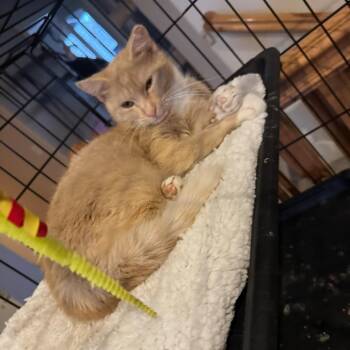 Pumpkin is tiny but mighty! She is a petite orange sweet heart with honey colored eyes and a sweet meow....
