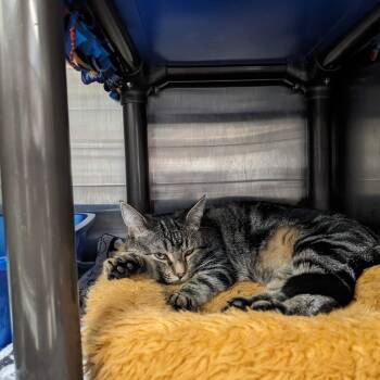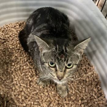 Meet Ratatouille, your cutest little companion! A young female tabby with beautiful stripes and adorable dark paws, this stunning cat...