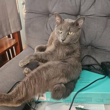 Moon Pie is a very affectionate cat that enjoys playing with his cat friends as well as having a toy...
