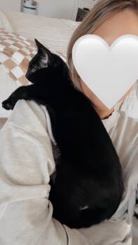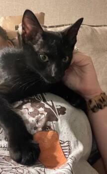 This handsome 5-month-old black kitten was found on the side of the road, but you’d never know...