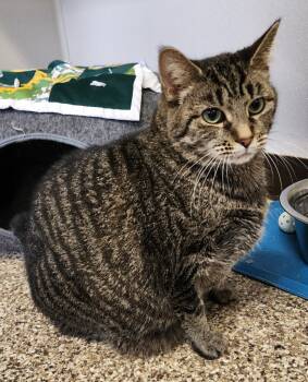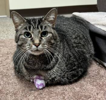 Venus is 5 years and 10 months old and front paw declawed. This chonky lady is on a weight loss...