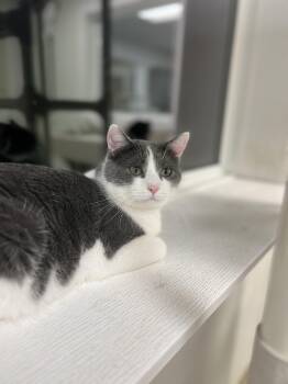 Thanos is a handsome grey and white boy who’s traded his shy beginnings for a warm, affectionate personality. He loves...