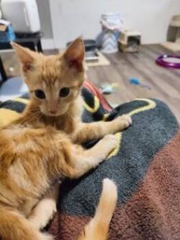 Ghoul is a 12-week-old male. He is microchipped and up to date on his vaccinations.