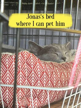 Jonas is an adorable young boy, all gray with darker gray stripes on his tail. He was trapped and ear-tipped...