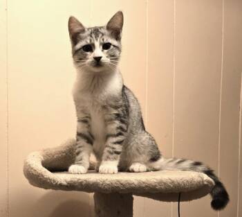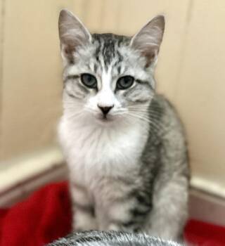 Chrissy is a three-month-old kitten (born around August 7) with beautiful silver tabby coloring. She was born on a farm...