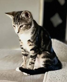 Meet Joelle, a classic tabby with her dark dappled coat and adorable white chest and paws. She is...