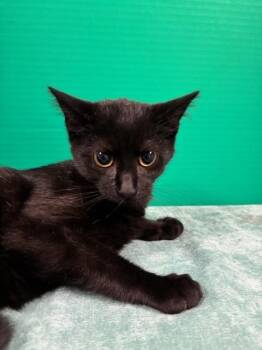 This stunning black kitten is pure magic from whiskers to tail tip. With his sleek, shiny coat and beautiful yellow...