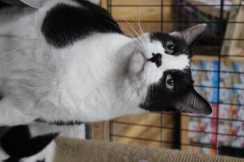 Mr Kitty checking in from his new foster pad. Still looking for his place in time. Stunning green-eyed, overweight personality...