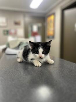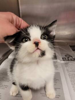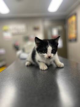 Introducing Bandit, an adorable 6-week-old Black and White Domestic Short Hair kitten with a big...
