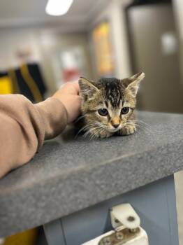 ***TRIAL ADOPTION ONLY*** Meet Haze! Haze is an adorable 6-week-old Tabby Domestic Short Hair kitten looking for a loving forever...