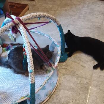 Prada and Kevin kissing in a cat tree. She loves the chase, watches as Kevin goes by and doesn't only...