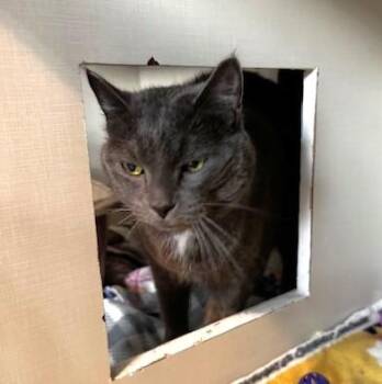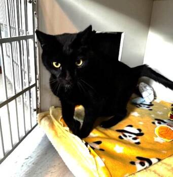 Mittens (grey) and Midnight (black) are two adult male cats...