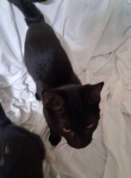 Black Knight is a gorgeous slick black kitten with golden eyes.