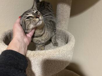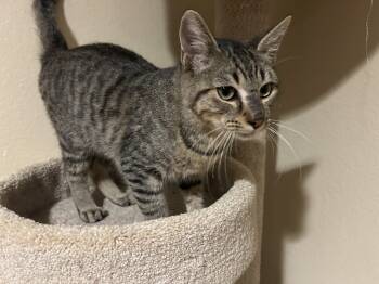 Hex is a sweet, quiet grey tabby teenager. He is small for his age and LOVES attention. Hex also likes...