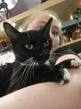 Jazzy is a black cat with white socks and locket, found living on the streets. She seemed very...