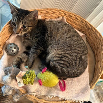 Larissa is a sweet 4 month old tabby kitten with a warm personality and soft purr, who loves to cuddle...