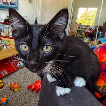 These two 2-month-old kittens-a playful boy named Jinx and his sweet sister Minx-are...