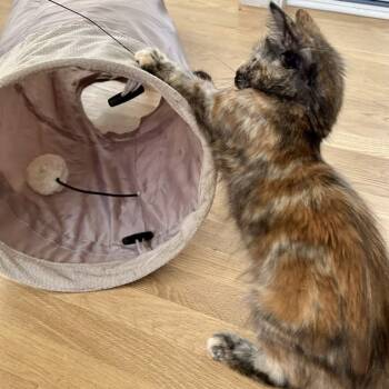 Hazel may be the smaller sister, but she has a big personality. This playful tortie loves batting toys and wrestling...