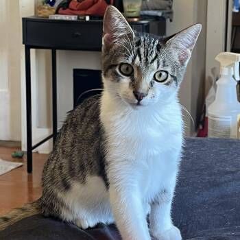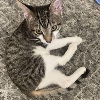 Hufflepuff is a chonky, healthy, brown tabby boy with the...