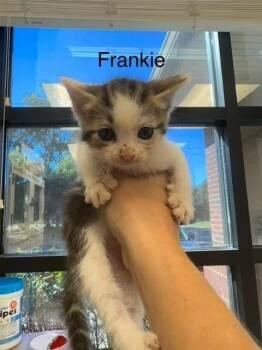 Frankie the tiniest little baby is here! He is an adorable gray...