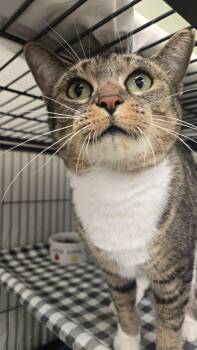 Meet Emmy, a delightful adult cat residing in a shelter, ready to bring joy and companionship...