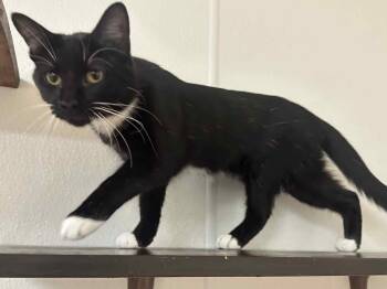 Meet Bootsie, a chatty little lady with the most striking look—sleek black fur, dainty white paws, and long, dramatic white...