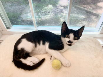 Meet Ivy! She enjoys having her soft beautiful black and white fur coat petted and this will start her purr...
