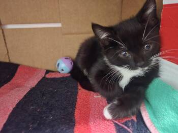 Mia is a 2 month old friendly kitty who gets along with other cats. She is looking for a home...