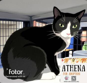 Hi, I’m Athena—a sweet little tuxedo girl! I was rescued from a parking lot, all wet, flea-covered, and very skinny....