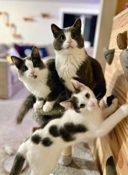 Hershey is a sweet 2-year-old mama cat, looking for a forever home for her and her playful 6-month-old kittens, Snickers...