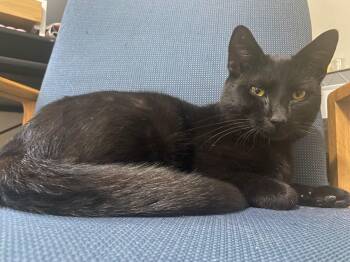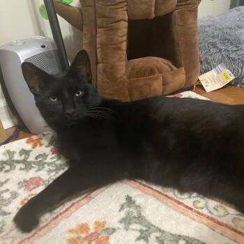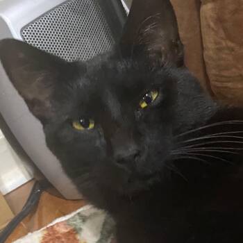 Ozzy is a sleek, all-black cat with...