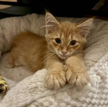 Buffy & Spike where found as strays, they are about 13 weeks old (3 months). Buffy is an orange DSH...