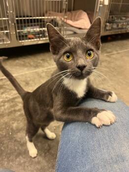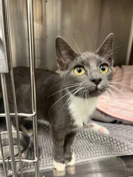 Orville is a confident and affectionate young cat. Found as a stray, this grey and white...