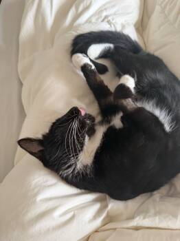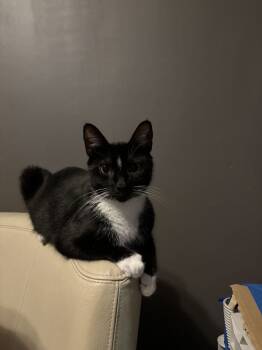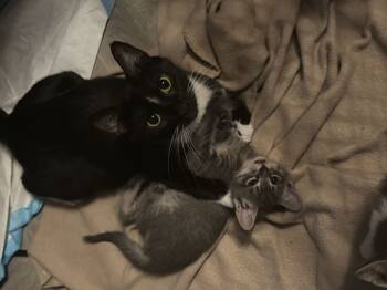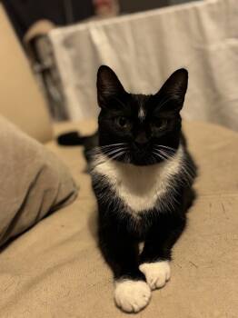 Blueberry is around two years old, she has beautiful green eyes, and the cutest little tuxedo. She was a mom...
