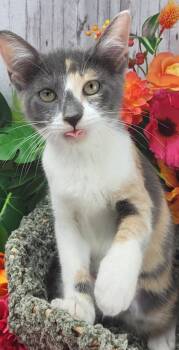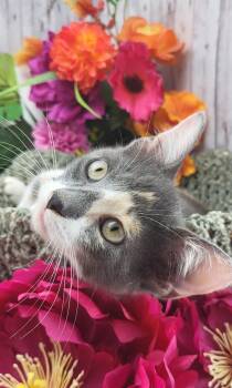 Iris is a gorgeous dilute calico with a heart...