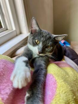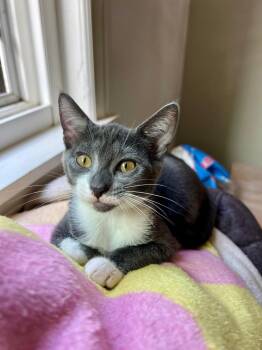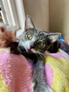 I'm a 3-month-old white and grey tabby girl who can steal anyone's heart. I came from a scary...
