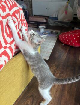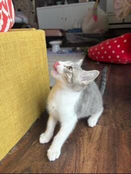 Hi Everyone. Meet Vi—a 12 week old female white and grey tabby kitten. Vi is the epitome of a sweet,...