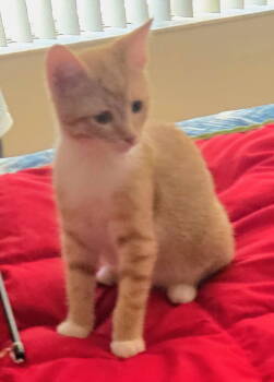 Pumpkin is a 3 month old, domestic short hair, orange and white tabby. He is a little shy at 1st...