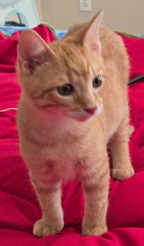 This is Saffron. He is a 3 month old, male,domestic short hair, orange tabby. He loves to play with his...
