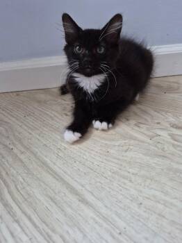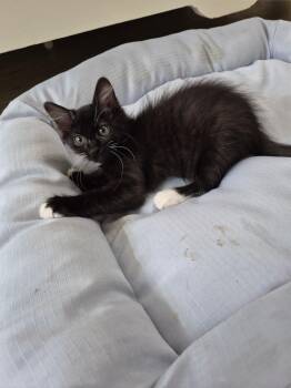 Meet Nuzzles, a sweet and spirited black kitten with adorable white feet that make her look like she’s always wearing...