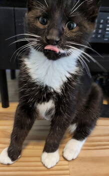 Meet Stitch! This 4-month-old tuxedo kitten is full of curiosity and energy. With his adorable black-and-white coat and soulful eyes,...