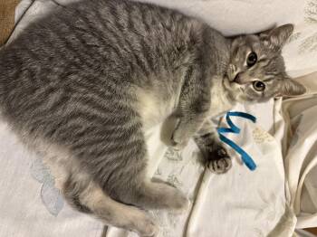 Finch was rescued from an outdoor colony. He was very timid at first but has really opened up to pats...