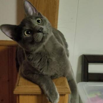 She is Blair, the goofy one. She is a high energy cat, zoomies are a must. She is my cat...