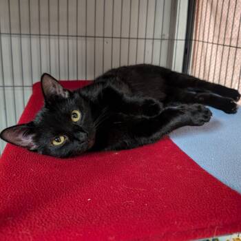 Meet Espresso! Espresso is an approximately 2 year old domestic shorthaired black cat. She is a spayed female.