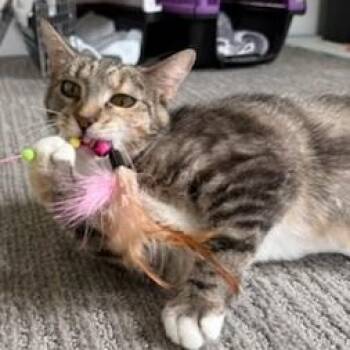 Peaches is a ginger-brown female tabby cat with a large, loving personality. She is very attached to her humans and...