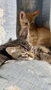 Hi, my name is Grimace (AKA Grimmy). I am a 3-month-old, male, orange tabby kitten. I love my brother, Hammy!...